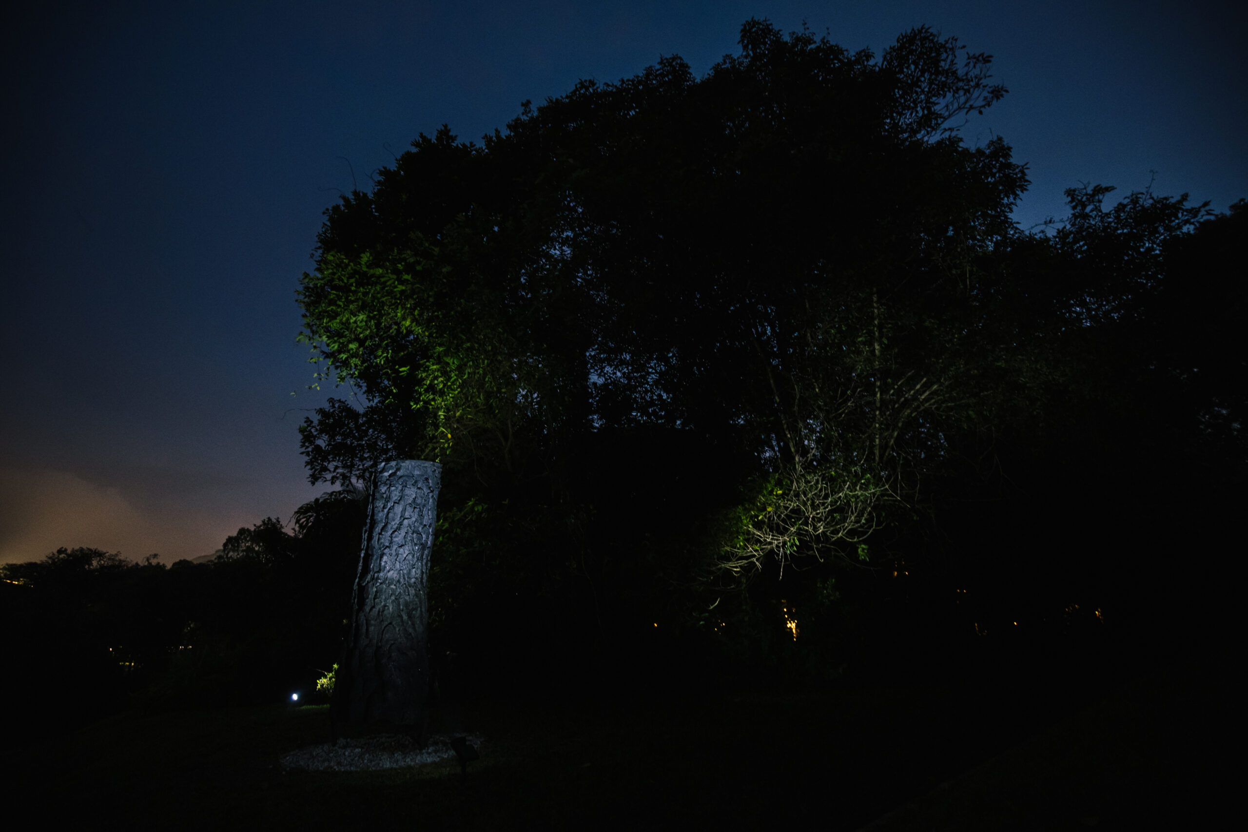 A cast bronze sculpture that embodies the fossilised remains of terrestrial vegetation. During the day, the sculpture is a sublimation of a burnt log, its digitally-modified body appearing as a mirage amidst the landscape of Wessex Estate. At night, the sculpture recedes into the shadowy vegetation surrounds. Encounters with this peculiar object along the clearing is quite like traversing the boundary between imaginative form and objective reality.ย ย