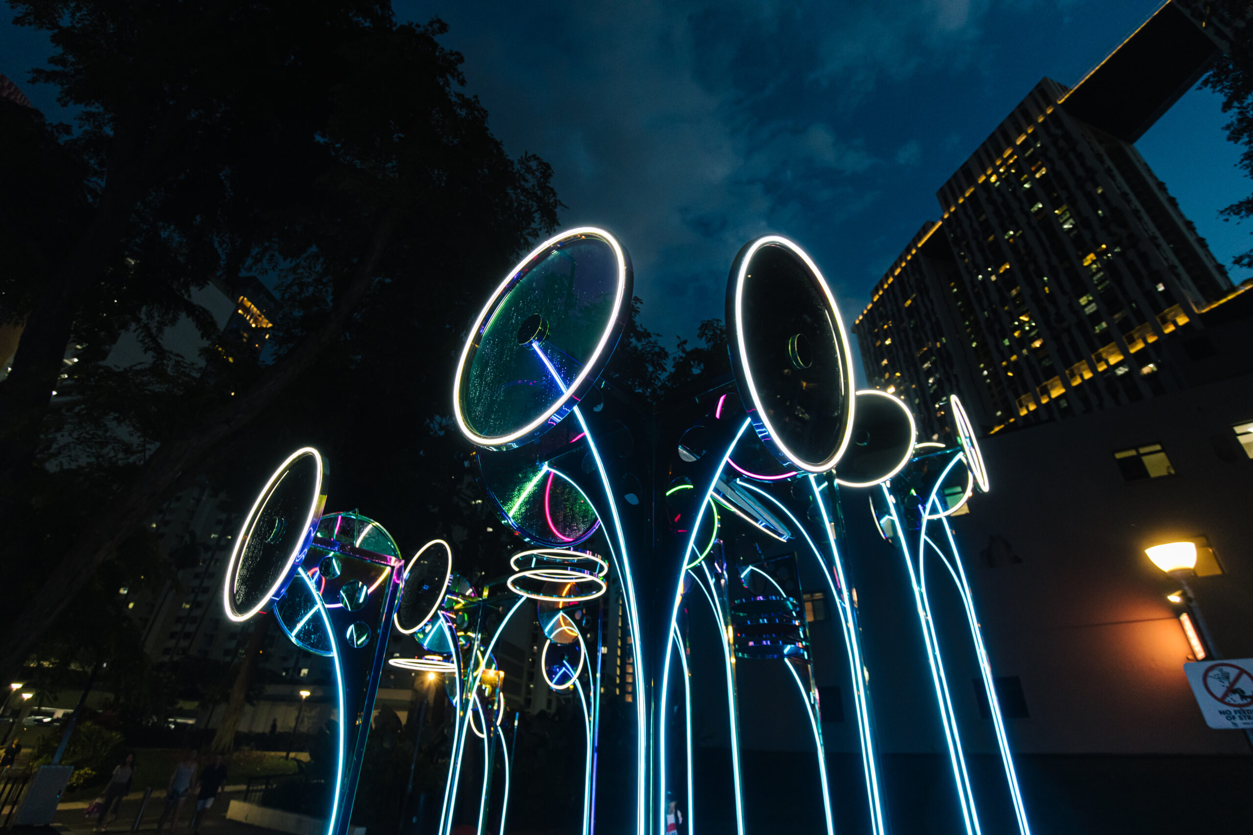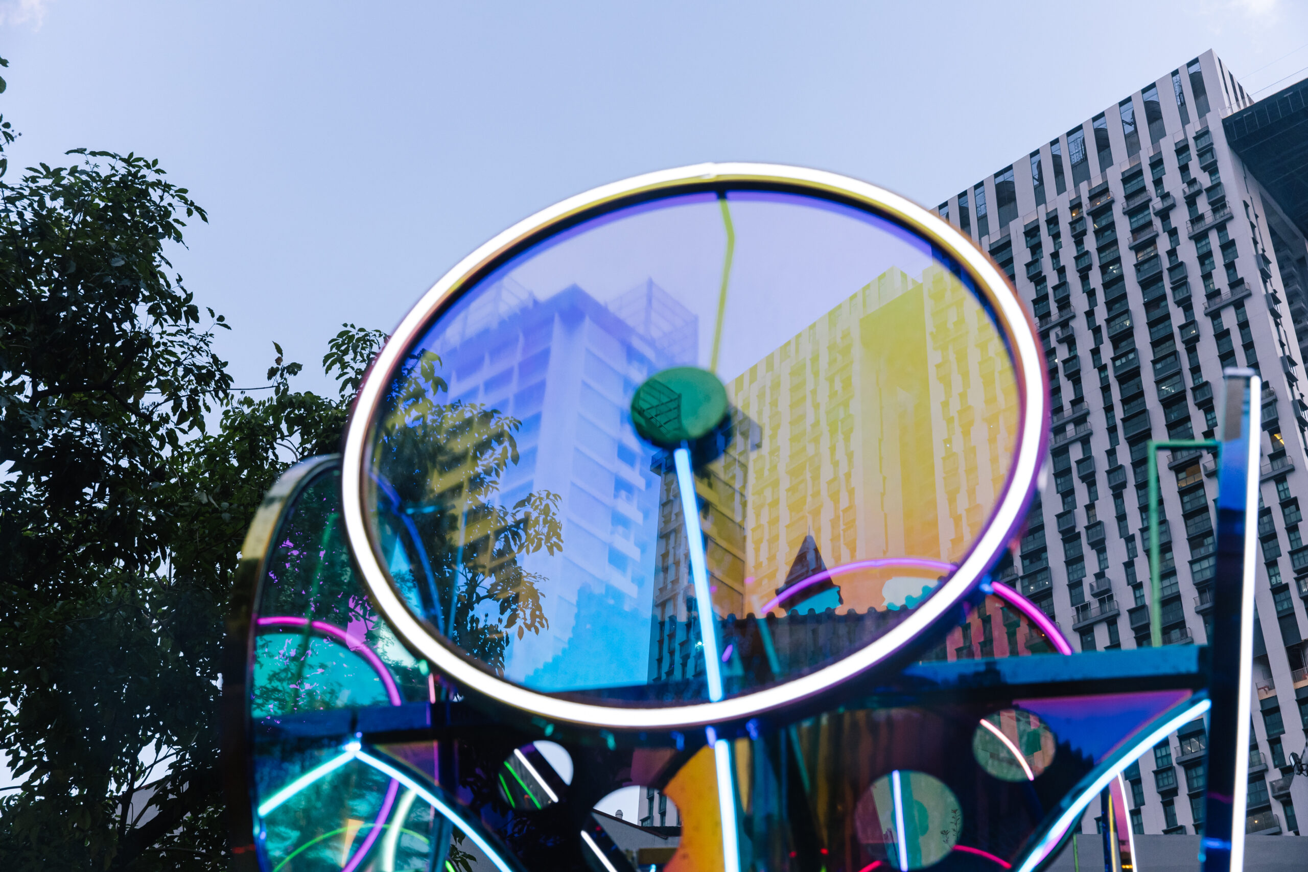 {still} life presents reflective surfaces of varying sizes, encouraging viewers to peer into them. Strategically positioned for the unexpected encounter, the viewer gazes downwards to see the sky, and looks up to see the ground. Certain mirrors function as picture frames highlighting and contrasting specific details in the environment—old vs new, natural vs manmade, public vs private. —drawing closer the lesser-noticed and bringing the past a little closer to the present. This jostling of views that {still} life brings forth epitomises Singapore’s urbanity: around something historic or conserved, there is, often, a very modernised step-in.